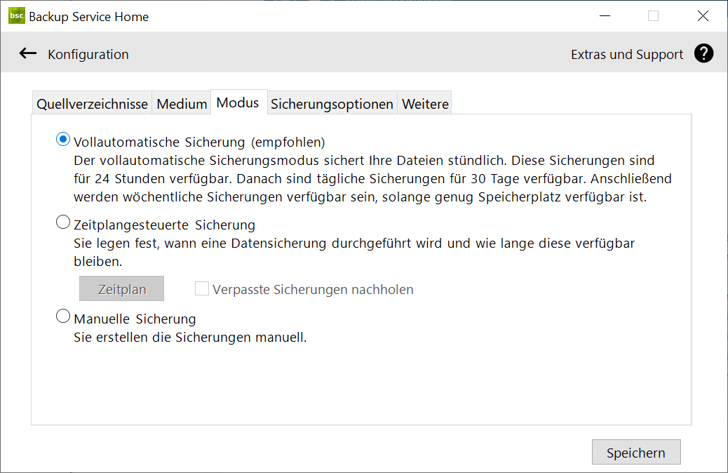 Backup Service Home ist eine sogenannte Versionssicherung. Darunter versteht man eine Software, die mehrere Abbilder einer Datei anfertigt, sodass man zu nahezu jeder Dateiänderung zurückgehen kann. So kannst du dir zum Beispiel anzeigen lassen, wie dein PC vor einer Woche oder einem Monat aussah. Ein weiterer Vorteil besteht in der Geschwindigkeit. Im Gegensatz zu anderen Methoden muss bei der Versionssicherung nur der Teil der Daten gesichert werden, der sich geändert hat.